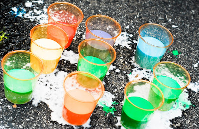 recipe: 1 cup cornstarch. 1 cup water. mix. add food dye. and paint.